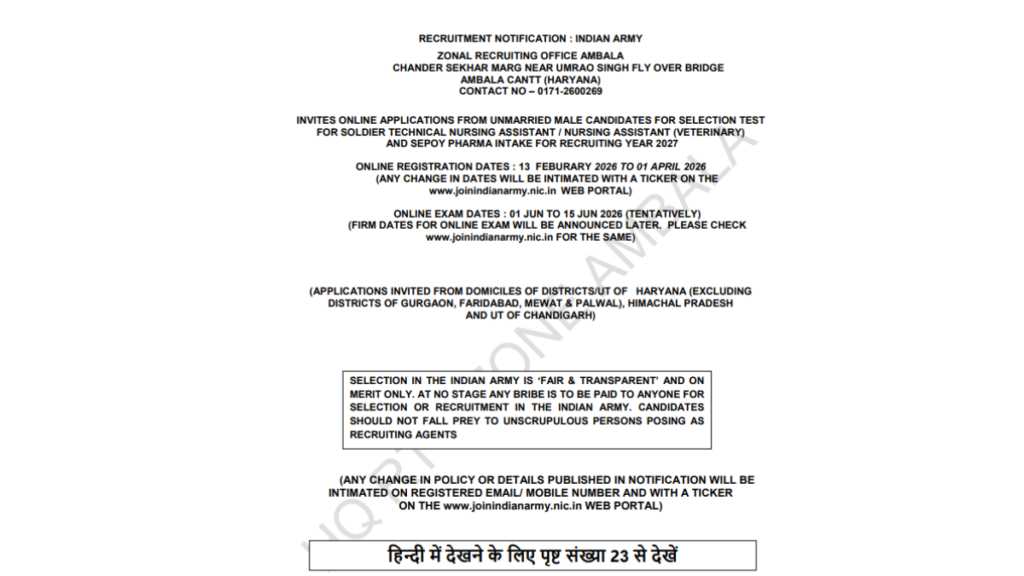 | भर्ती का नाम | Indian Army Nursing Assistant Recruitment 2026 |