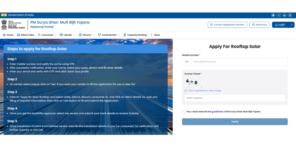 - अब दोबारा वेबसाइट पर जाकर Login to Apply for Rooftop Solar पर क्लिक करें